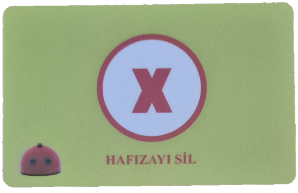 Oluşturulan program akışında herhangi bir hata olduğu düşünülüyorsa RESET Kart’ı okutularak robotun tüm hafızası silinir.